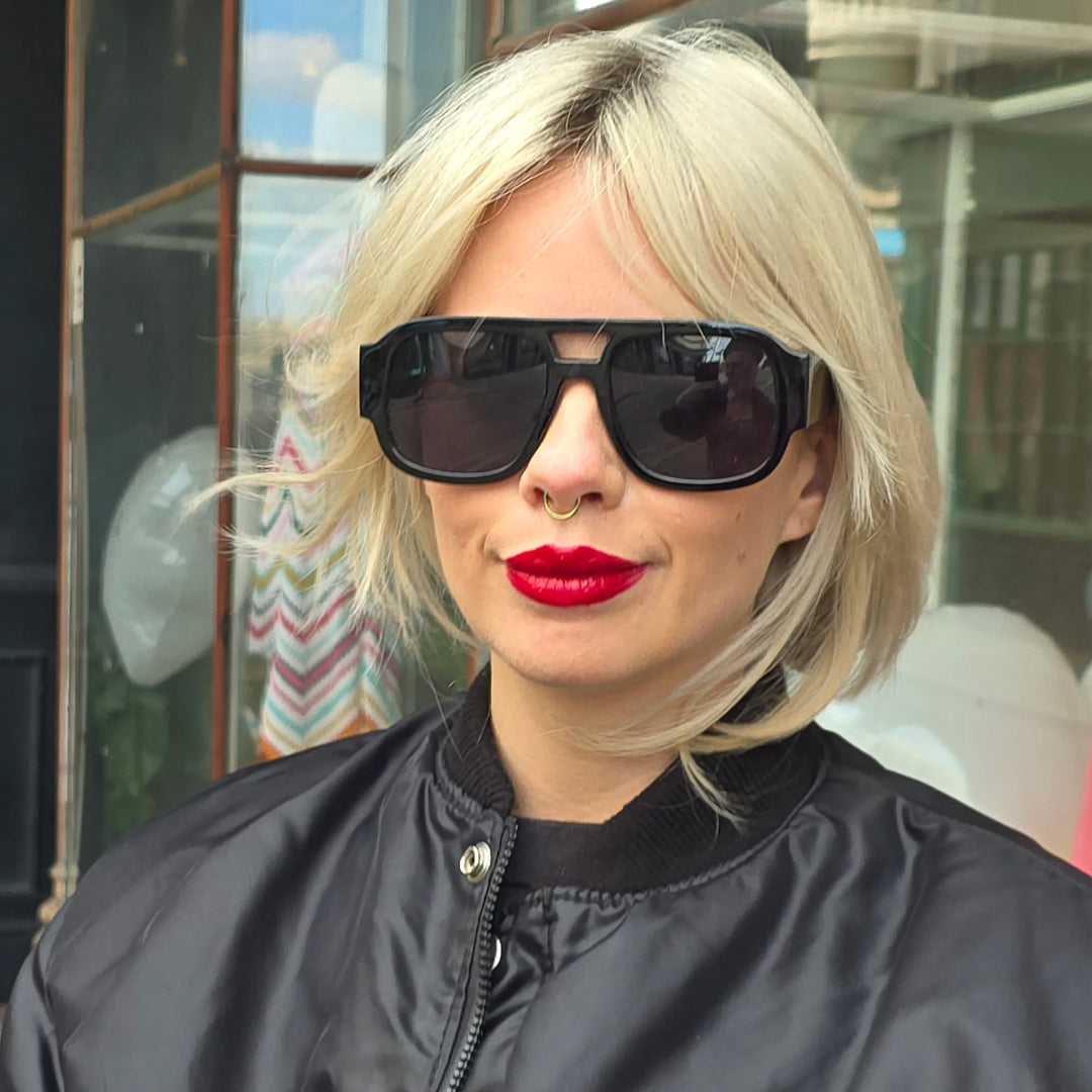 Bravura Sunglasses feature a bold oversized silhouette with sharp modern lines and premium craftsmanship delivering durable lightweight comfort through a TR90 frame combined with high clarity bio based polyamide lenses offering full UV400 protection and scratch resistant optics this unisex statement design elevates any look with confidence sophistication and everyday versatility
